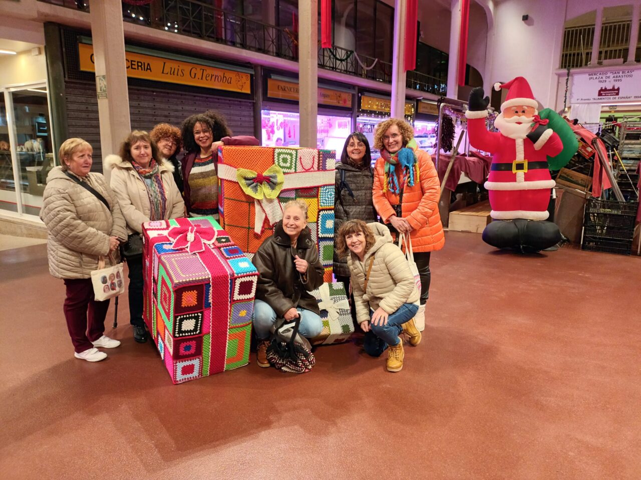 Hicimos una intervención en la tradicional Plaza de Abastos. Como siempre el trabajo tejeril, no es equitativo, unas aportan más tejido que otras (me incluyo en las que aprueban de chiripa) pero formamos un grupo muy bonito en el que cada una aporta lo que puede y todas somos igual de valiosas e importantes.